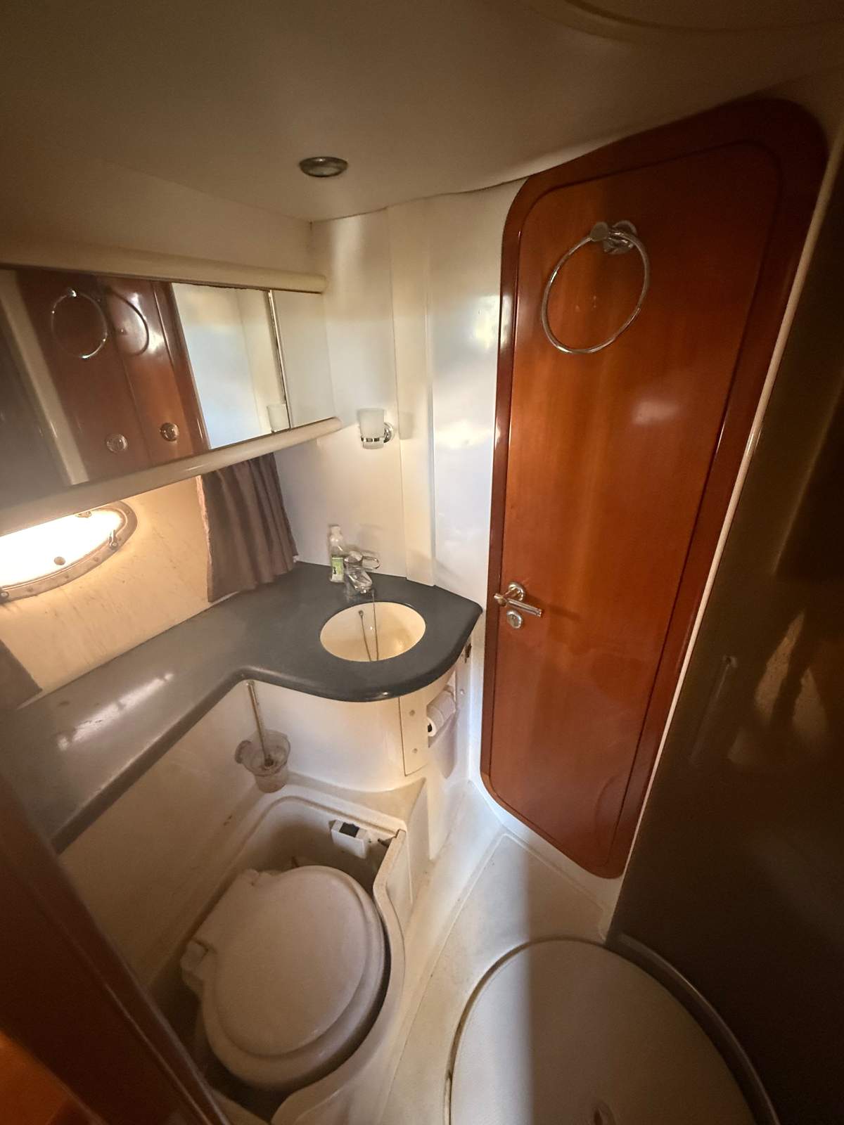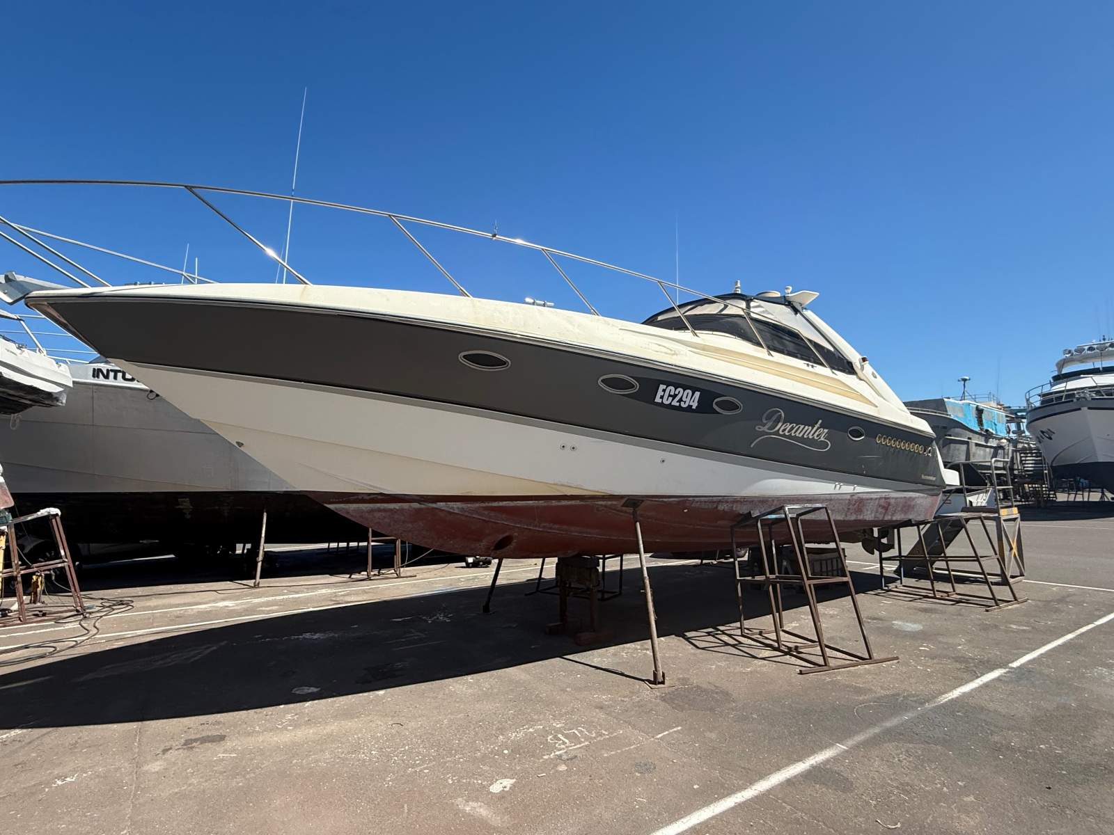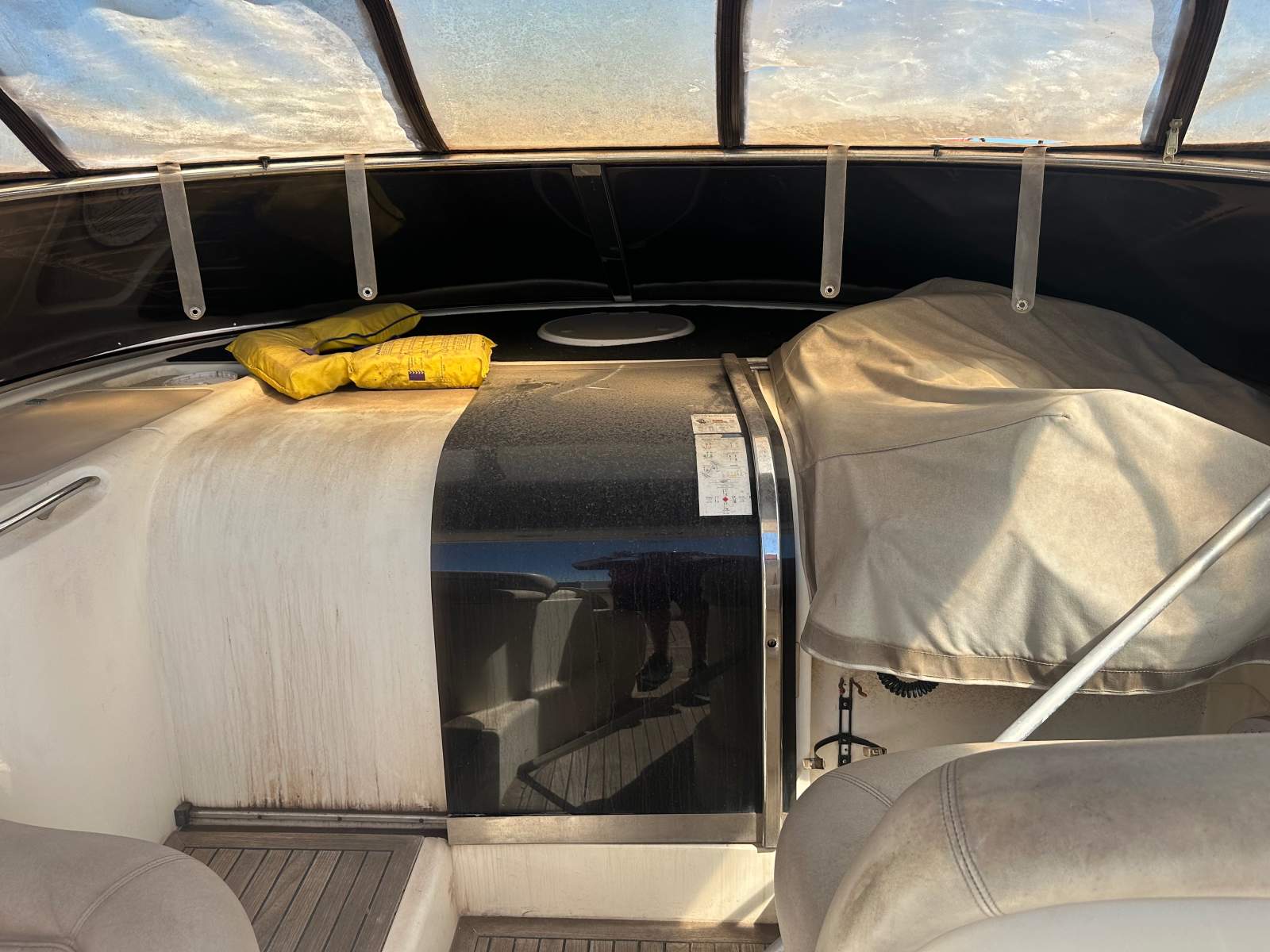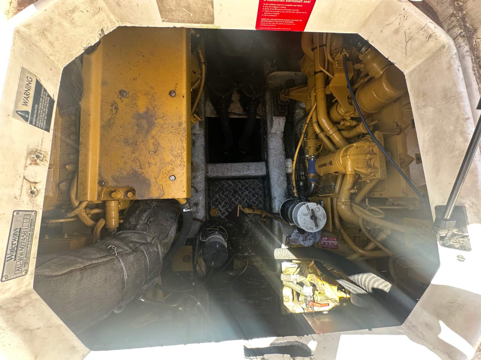 Sun seeker Portofini 42 footer has had a 50k work completed prior to going in the water where unfortunately a fitting issue caused the aft of the vessel to submerge allowing water to ingress into the engine room. Whilst only submerged for a short period the vessel was quickly pulled out of the water where mechanics filled the engines with diesel to try to save them.